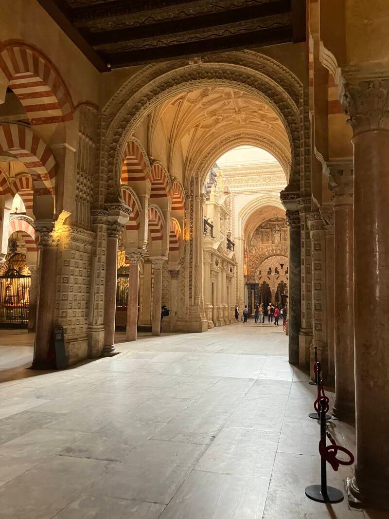 De volgende dag staat in het teken van deze blog en een bezoek aan de Mezquita. Daarom heen wordt gegeten, gedronken en geluierd. De blog van de eerste (ruime) week schrijven we heerlijk in de ochtendzon op een bankje bij de Romeinse brug. Daarna is het tijd om onze gids op te zoeken. De Mezquita kathedraal is inderdaad een bezoek waard: het is uniek hoeveel culturen, stijlen, geloofsuitingen en tijdsgeesten in een kolossaal gebouw samenkomen, op elkaar inwerken en versterken. Wij vonden het prachtig!