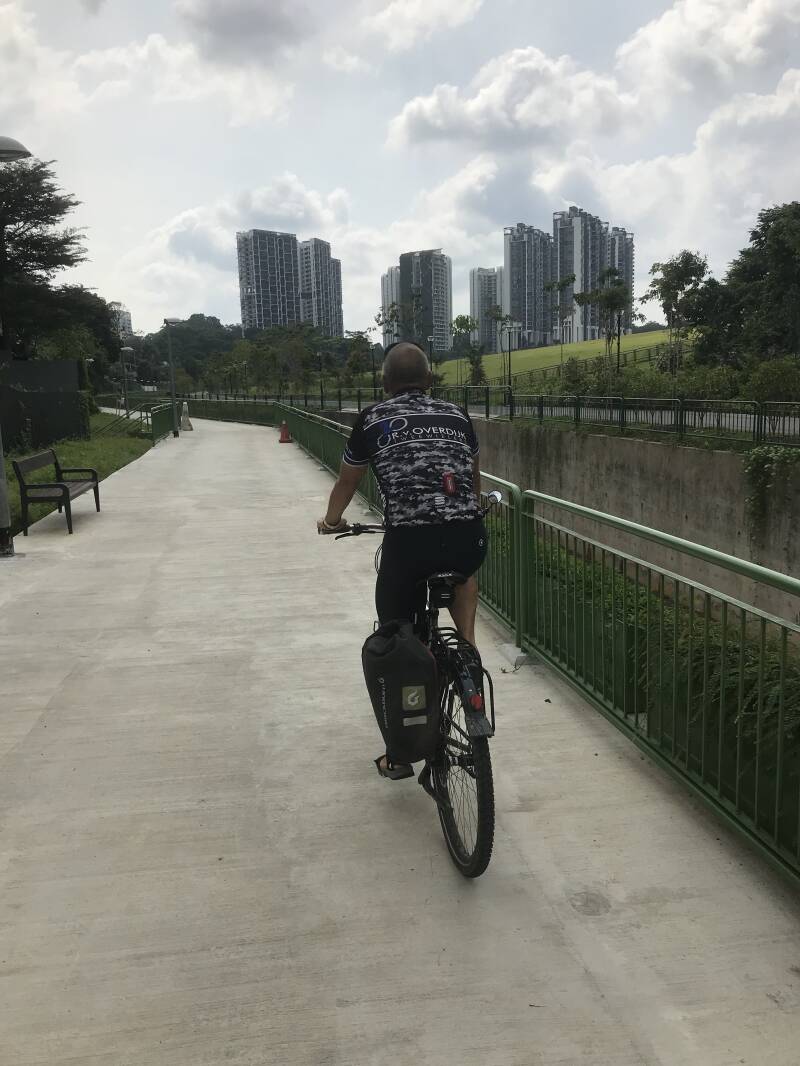 Aan de overkant van de brug is alles anders. De weg is van uitmuntende kwaliteit, trottoirs zijn overkapt, de openbare ruimte is onberispelijk ingericht én onderhouden. Overal staan teksten op de weg en hangen borden om de geldende regels uit te leggen. Onze app stuurt ons naar het Park Connector Network (PCN), een fietsnetwerk die de parken in Singapore met elkaar verbindt. We moeten eerst naar de Hollandse School fietsen om daar iets moois in ontvangst te nemen. De PCN gaat een andere richting uit maar niet getreurd, onze route-app vertelt ons dat er vanaf de PCN nog een fietspad naar deze school leidt, zonder dat we op het hoofdwegennet belanden. Het fietspad blijkt echter een mountainbike track in een groot park te zijn; een technisch parcours vol reliëf, rotsen, stronken en modder. Lieve komoot-app, dit red bull-achtige pad mag wel fun zijn voor full-suspension MTB-ers, maar is echt niet geschikt voor langeafstand-fietsers met ieder 20 kilo bagage! We hoeven het maar 3 kilometer te volgen, maar we doen er eindeloos lang over en tot overmaat van ramp blijkt het laatste stukje van de mountainbike route, vanwege bouwwerkzaamheden, verboden gebied te zijn. Waarschijnlijk wordt het park een klein beetje kleiner en staan er binnenkort een paar wolkenkrabbers aan de rand van het park.