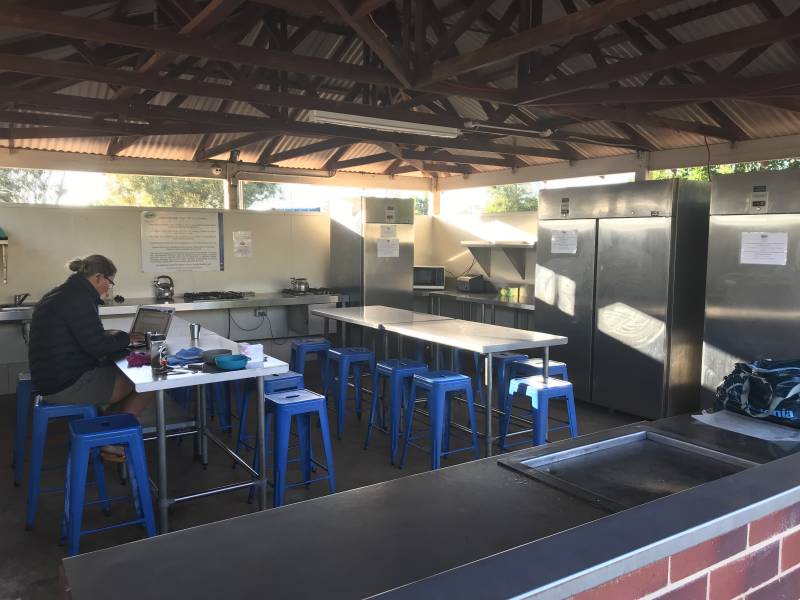Na een kilometer of 60 draaien we een parkeerterrein op met picknicktafels. Het is een warme dag en we zijn blij om even in de schaduw te kunnen zitten. Al snel schuiven twee Duitse dames aan en die waarschijnlijk door hun afkomst uit fietsstad Tübbingen geïnteresseerd zijn in onze reis. Ondertussen bieden de dames ons water, komkommer en tomaat aan, maar we slaan alles af. Als de dames wegrijden, rijdt er een stel het terrein op dat enthousiast naar ons roept dat ze ons eerder op Barn Hill Station hebben gezien. Even later staan ze aan de picknick tafel met twee ijsjes. Die slaan we niet af en we snoepen en zwijmelen van de ijskoude reep mangokokos-ijs. We zijn pas halverwege, maar kunnen er weer flink tegenaan.