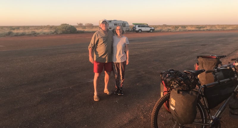 Naast de zwaaiers zijn er inmiddels een aantal mensen die ons onderweg helpen en die wij in Amerika ‘trail angels’ noemden. Op onze website komen ze op de pagina ’Vrienden onderweg’ en twee bijzonder grote helden staan opeens langs de kant geparkeerd en reiken koude Gatorades aan: Bruce & Cathy, het is de derde keer dat we elkaar treffen! Al snel zitten we in de airco-gekoelde camper met een lunch erbij en een kop koffie te kletsen over ons nieuw Nullarbor plan. Enige tijd later is het plan van tafel en ligt er een nieuw plan om vanaf Adelaide naar Sydney te fietsen langs de kust. Een totaal ander deel van Australië. De Nullarbor zou meer van hetzelfde zijn: eindeloze vlaktes zonder bomen en enorme afstanden tussen de roadhouses. Langs de zuidoost kust liggen de prachtigste fietsroutes en veel meer dorpjes en steden.