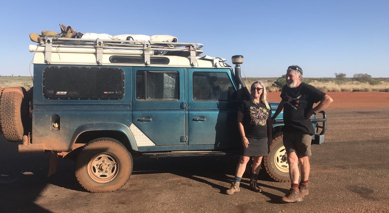Vlak voordat de dagteller op 100 km staat, parkeert er een gehuurde camper in de berm en stappen twee mensen uit die gebaren om even te parkeren in de schaduw van hun voertuig. Daar zeggen we geen nee tegen. Al kilometerslang is het land vlak en kaal en een beetje schaduw is een luxe. Ze heten Greig en Lindee en dan vertellen ze dat ze bij het roadhouse Bob hebben ontmoet en toveren ze een fles koude frisdrank tevoorschijn: een cadeautje van Bob! Ze stoppen ons ook nog wat fruit toe en ondertussen vertellen ze dat ze uit New South Wales komen, nu twee weken vakantie hebben en ook veel fietsen. Er wordt gezellig gekletst terwijl wij de fles leegdrinken. Ondertussen vraagt Greig Harry het hemd van z’n lijf over onze fietsen.