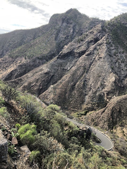 Op ruim 900 meter zien we San Bartolomé onder ons liggen. Dat betekent dat we eerst tientallen zuurverdiende hoogtemeters verliezen voordat we rond 12 uur op het terras van een bakker gaan zitten lunchen. We schatten dat de klim nog drieënhalf uur zal duren, dus als we om 12:30 uur weer op de fiets stappen moeten we rond 16 uur op de top kunnen zijn. In de afdaling naar San Bartolomé waren we de weg naar de oostkust al gepasseerd, dus eigenlijk was de keuze al gemaakt: we're gonna nail this thing! En zo gebeurt het ook en al snel laten we dit leuke stadje achter ons.