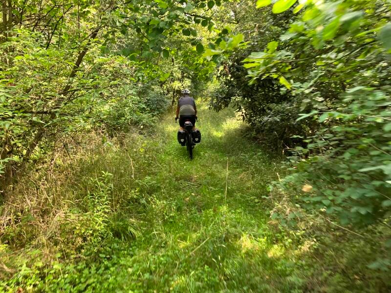 Vanaf de Rijn fietsen wij naar de rivier de Ruhr en Komoot trakteert ons alweer op een superieure gravelroute door deze gigantische metropool van het Ruhrgebied. Iets van boven trakteert ons ook, namelijk op harde regen. We besluiten stoïcijns door te fietsen. In de ochtend hadden we al besloten om vanavond een hotelletje te nemen: het blijft overdag lang regenen, vanavond gaat het weer regenen en vannacht zou het de hele nacht hard blijven regenen.