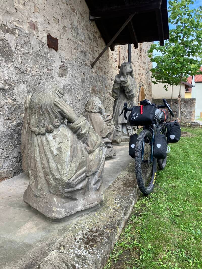 We hebben het op deze reis nog niet meegemaakt, maar het blijft 's nachts en 's ochtends droog. Bij de kassa wacht ons nog een leuke verrassing: de overnachting op deze leuke camping kost maar 15 euro. We laten Komoot de weg wijzen naar de volgende camping in Weissenstadt. De eerste 30 kilometer volgt Komoot grappig genoeg de Mainroute en die is zowaar zeer aangenaam. Daarna wacht een tweede helft met flink veel gravel en stevige klimpartijen.