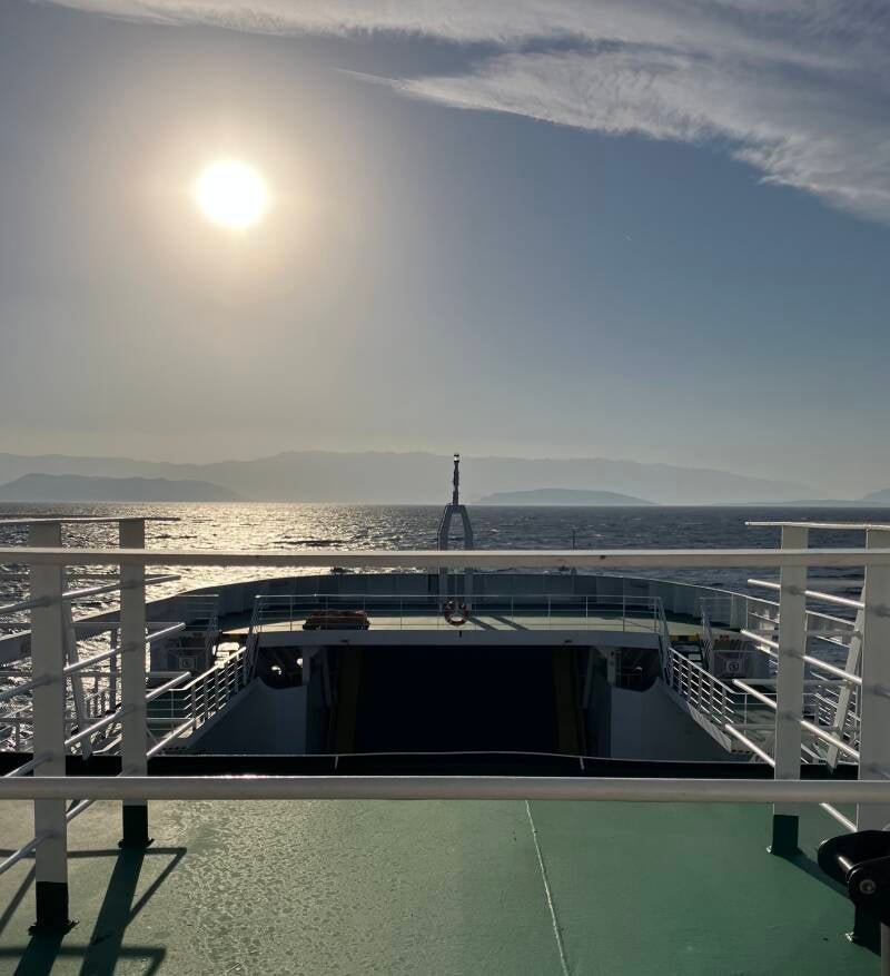 De veerboot vertrekt vroeg in de ochtend. We pakken snel in, drinken wel nog een kop koffie, geven Traile een dikke knuffel, vergeten de bidons te vullen en arriveren op tijd in de haven. Het wordt steeds later licht en ook steeds eerder donker. Het lijkt misschien nog heel vroeg maar het is kwart voor acht als we wegvaren naar het volgende eiland Rab.