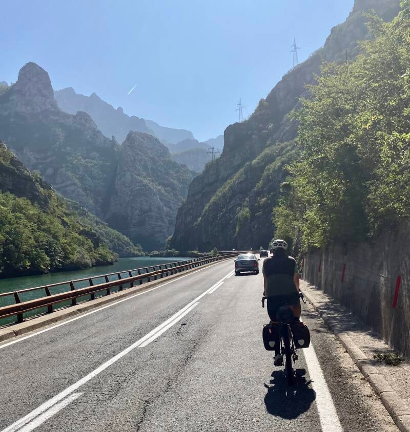 Na al die wc-opstoppingen is het dagdoel vandaag Mostar, dat bekend staat om een oude brug, die in de Joegoslavië oorlog echter vernield is en dus nu helemaal niet zo oud is. Maar dat terzijde, we moeten er eerst maar eens komen en dat doen we voornamelijk fietsend door een kloof. In stadje Jablanica stoppen we even en staan we toevallig (of niet zo toevallig) voor een Italiaans restaurant en we besluiten een cappuccino te doen. Het brouwsel is het smerigste tot dusver en heeft niets met koffie met melk te maken. Als het bij een Italiaanse restaurant al niet te zuipen is, moeten we de cappuccino voorlopig in dit land maar achterwege laten. Na het stadje wordt het helaas druk op de weg. De kloof is mooi maar we zijn vooral gefocust op het verkeer. Met name de buschauffeurs houden veel te weinig afstand en zoeven rakelings langs ons heen.
