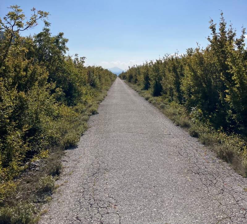 Niet alles van de Ciro Trail is leuk fietsen, zoals dit eindeloos rechte pad vals plat.