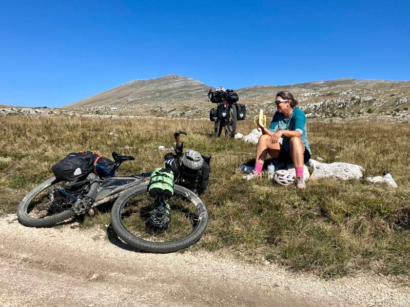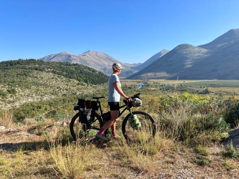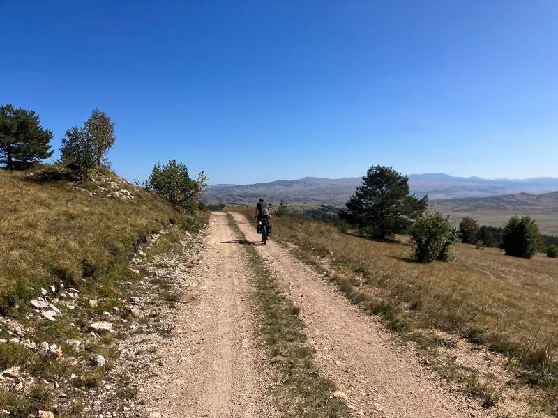 Enkele “records” van gisteren worden de volgende dag zoals verwacht gebroken. In ieder geval het hoogste punt. We fietsen naar het verrassend leuke stadje Livno, dat bijna 100% Bosnisch-Kroatisch is en dat zie je aan de vele vlaggen die heel veel lijken op de Kroatische vlag. Vanuit Livno klimmen we eerst nog een stukje op asfalt, maar al snel wordt dit vervangen door grof, diep, los grind en stenen. De klim is zwaar, heel zwaar, maar ook geweldig mooi.