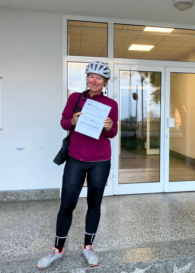 Om 7:30 uur staan we net boven de mist weer bij het douanekantoor. We geven onze paspoorten, vertellen over de reisplannen en de wens om de Cakor pas te fietsen en betalen €10 voor de aanvraag. Daarna wordt ons gevraagd om terug te gaan naar de entree en over een kwartier terug te komen. Binnen 10 minuten krijgen we de toestemming: een print met tekst, stempels en handtekeningen. Eerlijkheidshalve moeten we bekennen dat we geen van beide een blik hebben geworpen op het document. En we vragen ons sowieso af wat we er mee moeten aangezien het een onbewaakte grensovergang is. We zien het wel.