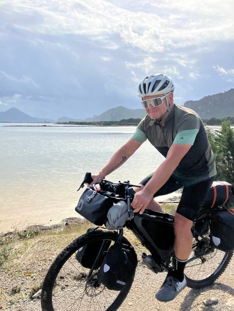 Al binnen vijf kilometer gaan alle extra warme kledingstukken uit en terug in de panniers. Het is iets van 14 graden en de zon en de klimmetjes verwarmen ons meer dan genoeg. We fietsen langs een prachtige kustlijn. Vlak voor het hoogste punt zet Harry zijn fiets dwars op de weg om een foto te maken van Roelie die minder snel klimt. Ze maakt - net als een doorgewinterde Van Vleuten - handig misbruik van het moment, geeft Harry geen kans meer en pakt daar haar allereerste punten in het bergklassement.