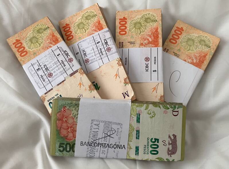 Dicht bij het Western Union kantoor ligt een outdoorshop waar we een gasblikje willen kopen. Als we daar aankomen staat de eigenaar verbouwereerd te kijken naar het massieve rolluik voor zijn winkel. Hij lijkt er niet in te komen en de politie is er al bijgehaald. Er blijkt te zijn ingebroken. We wachten even en zien ondertussen dat bij de buurman ook een Western Union dependance is gevestigd. We wagen een poging, maar na een tijdje in de rij hebben gestaan, horen we dat het geld op is en kunnen we weer rechtsomkeert maken. De outdoorshop is nog steeds niet open en we besluiten later op de dag terug te komen. De eigenaar heeft ons intussen wel verzekerd dat hij gasblikjes verkoopt. Inmiddels sturen we een berichtje naar “ons” WU-kantoor. Die meldt ons dat hij vandaag geen geld meer binnenkrijgt. Op onze volgende vraag waar we dan nog wel geld kunnen ophalen, geeft hij een groter kantoor op dat iets van 5 kilometer verderop ligt. Als we daar aankomen zien we een lange rij buiten staan en binnen in de ruime hal gaat de rij verder in een eftelingopstelling. “Nog honderd geldzoekenden voor u”, grappen we en we duimen dat er nog geld aanwezig is, als wij aan de beurt zijn. We beseffen dat geld ophalen in het Argentinië van nu echt wel een probleem is en besluiten ter plekke via de WU-app nog een derde bestelling van nog eens € 150 te doen. Twee uur later lopen we breed glimlachend met stapels bankbiljetten van 500 en 1000 (omgerekend dus € 0,50 en € 1) het kantoor uit. Achter de tweede D (dinero) kan nu ook een vinkje worden gezet.