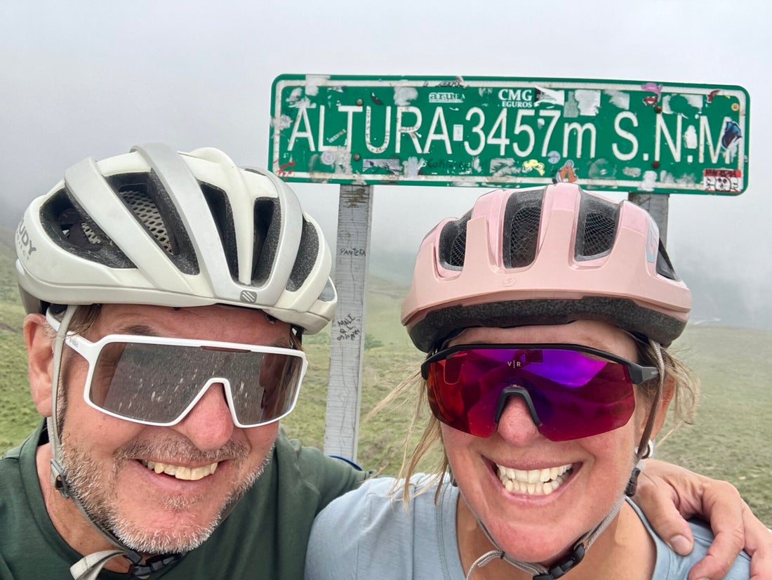 De laatste zes kilometer fietsen we pal naar het noorden en hebben we de wind in de zij en dat is maar goed ook, want we zitten er allebei wel een beetje doorheen. Moegestreden arriveren we bij de pas, de Abra Piedra del Molino en lezen op het bord 3.457 m terwijl we volgens internet en onze route-app op 3.370 m hoogte zijn. Het maakt ons niets uit. Het is best lang geleden (2017) dat we zo hoog zijn geweest met onze bepakte fietsen.