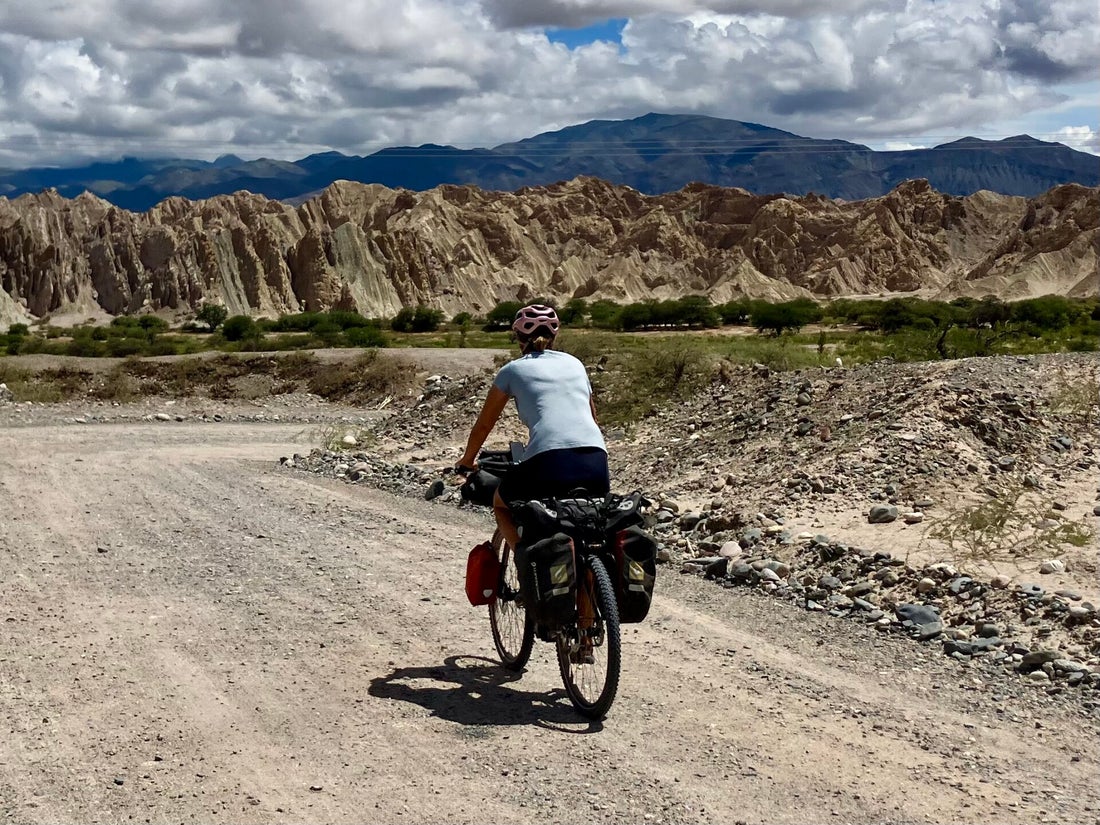 We worstelen mentaal en fysiek met dit stuk van de Ruta 40. De vele 'op en neers' zijn vooral een mentale beproeving voor Roelie: we verslinden honderden hoogtemeters zonder noemenswaardig hoger te komen. Harry is dat met zijn Limburgse roots wel gewend. De niet te vermijden of te omzeilen wasbordjes vormen weer vooral voor Harry een mentale beproeving: er kan geen tempo op gemaakt worden en ze vormen een aanslag op onze fietsen en gewrichten. De in Cafayate schoongeborstelde aandrijfriem krijst weer alsof we hem met elke omwenteling aan het martelen zijn. We weten dat dit, in tegenstelling tot een ketting, geen kwaad kan en we proberen het geluid te negeren.