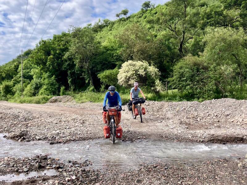 We genieten volop van het fietsende leven, de vrijheid en de zorgeloosheid. De etappes na Cordoba naar San Marco Sierras, die tussen Cafayate en Salta waren geweldig mooi. De jungleweg naar El Carmen en de veelkleurige en vormen van de bergen in de etappes in deze blog waren ook heel bijzonder en ook weer overweldigend mooi. Ook de steden Buenos Aires, Rosario, Cordoba, La Rioja en Salta hadden allemaal hun eigen charme (en fijne appartementjes). Terugkijkend op twee maanden Argentinië hebben we ook best wel wat afgezeurd over muggen, oneindig lange rechte wegen (met tegenwind), de late dinertijden, beperkt assortiment in supermarkten, lange wachtrijen, geld en de hittegolf. We missen stiekem de afwisseling die we van Europa kennen en het contact met andere mensen. Het jaartje Spaans aan de volksuniversiteit heeft ons helaas niet zover gebracht dat we een leuk gesprek kunnen voeren. We redden ons wel, maar een gezellig praatje lukt niet. Dat zal in Bolivia niet beter worden, ook al zitten we nu alweer 55 dagen onafgebroken aan de Duolingo. Voor nu in ons beste Spaans: 'adios Argentina y hola en Bolivia'!
