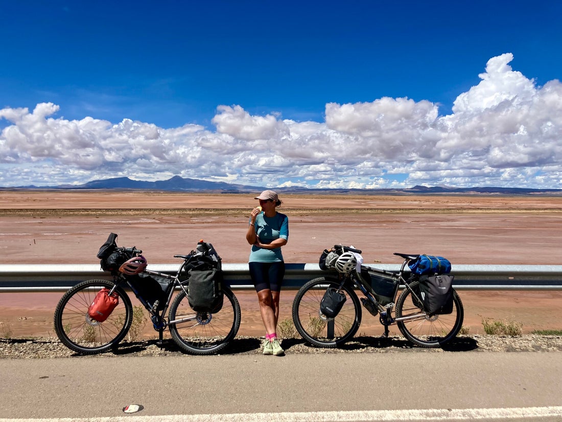 Laguna Blanca waar we een Braziliaanse fietser tegengekomen. Stoere vent. Wij zagen het niet zitten om 2000 m te klimmen om hier te komen en dan onzeker te zijn over de conditie van de wegen in het regenseizoen. Hij vertelt dat hij is gaan liften van om hier te komen. Het ziet er hier heel droog uit. Dat komt vast goed!