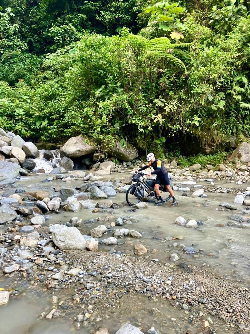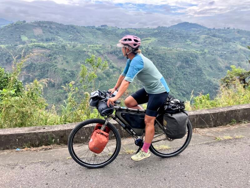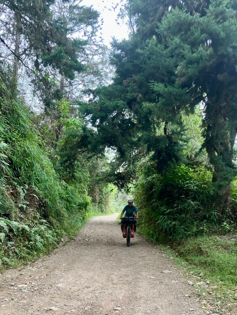 Robert en Lynn zijn we in 2019 in Thailand tegengekomen en zij zijn enthousiast over de 'Mark Watson'-route, die aan deze kant van de bergrug blijft en kleine kronkelende 'achteraf' weggetjes volgt. We doen er dan, met een hoop minder kilometers maar meer hoogtemeters, net zo lang over om de stad Neiva te bereiken. Onze nieuwe Australische vriend Warren ("call me Woz") heeft gehoord dat de route door het Parque National ook niet veilig is. Bovendien zijn er weinig voorzieningen onderweg en wordt er zoals eigenlijk altijd hier in Colombia voor iedere volgende dag regen voorspeld... Waarom gokken op een onbekende route als een andere route hoog gewaardeerd wordt door enkele bikepackers en daar liggen voldoende dorpjes, winkeltjes en accommodaties aan? Eigenlijk is de keuze dan erg simpel. Maar... Mark Watson en zijn vriendin Hannah zijn bikepack-bikkels en Robert en Lynn ook, oftewel: minimaal bepakt op moutainbikes met voorvorkvering. En klein detail: een stuk (>20-30 jaar) jonger dan wij. Gaan we er nog spijt van krijgen?
