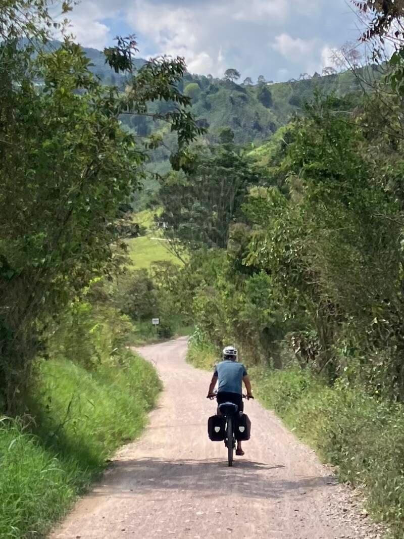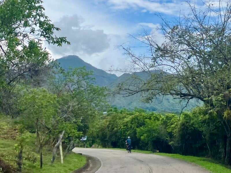 De eerste etappe in Colombia is een mooie. We fietsen eerst over een leuk onverhard weggetje, vervolgens over een mooie rustige asfaltweg en alleen de laatste vijf kilometer doen we op de brede Panamerican highway.