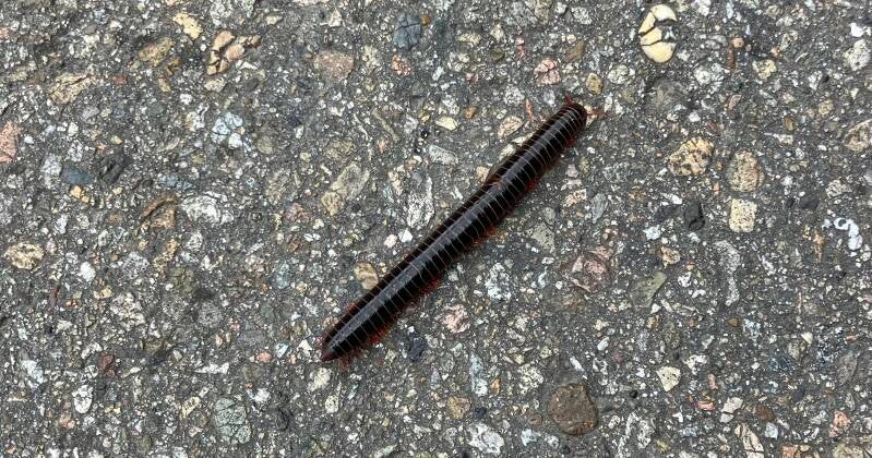We dachten dat dit beestje dat frequent de weg oversteekt, wel een bijzondere naam zou hebben en misschien heel giftig zou zijn. Maar het is een 'ordinaire' duizendpoot