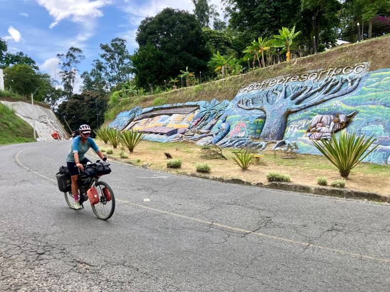 De Colombiaanse koffieregio, de 'Eje (as) de cafetera' en de 'Valle de café' is een fietsers-walhalla, afgaand op wat we gehoord hebben: oneindig veel leuke routes door een 'Van Gogh-land'. Die laatste kwalificatie komt van onze Colombiaanse vriend Ivan uit Ibagué, hij zou wel niet de Nuenense periode van Van Gogh hebben bedoeld.