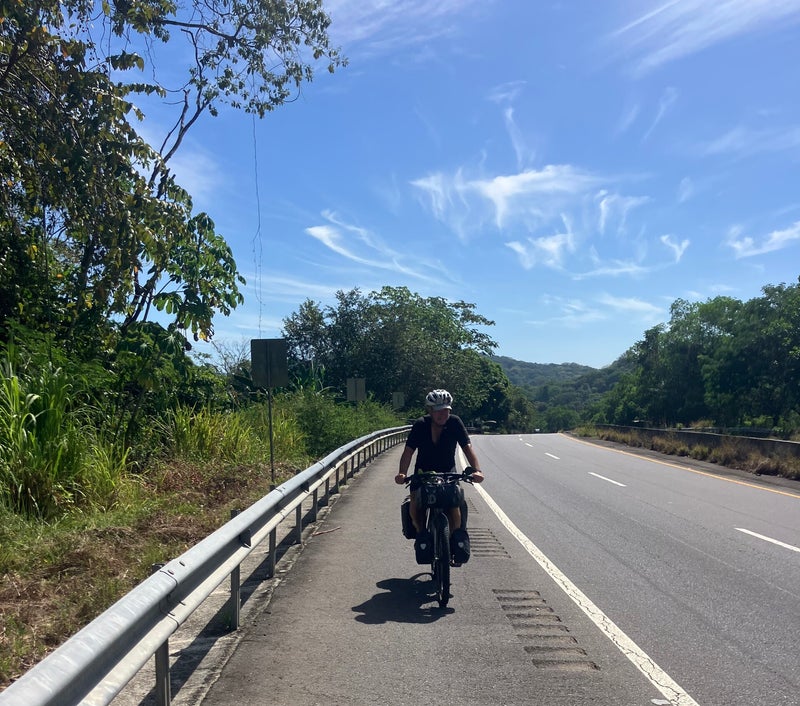 De etappe naar David is weliswaar kort met minder hoogtemeters, maar we starten toch vroeg in de ochtend om rond het middaguur te kunnen stoppen. Het is weer een stralende dag op de Panamerican highway. De weg is ondanks dat het een werkdag is niet erg druk. Dat is prettig want op de vluchtstrook is niet altijd fietsen.