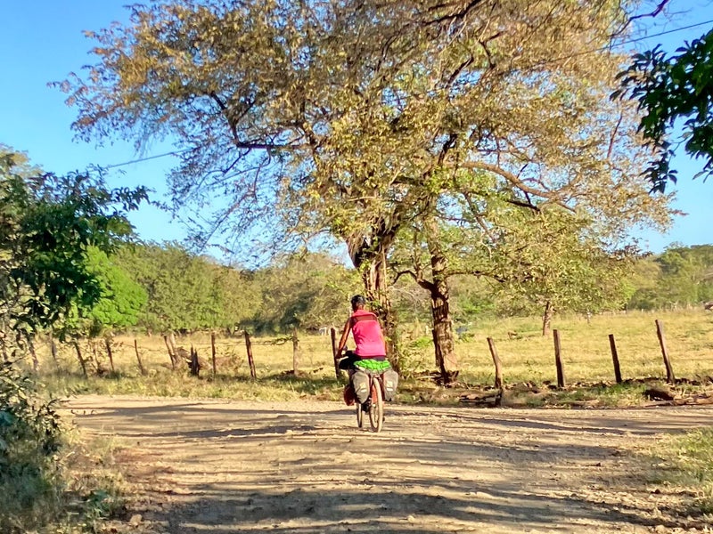 We nemen afscheid van Esteban en beginnen fietsen we over prima asfalt richting zuidoosten naar de kust. De eerste badplaats ligt aan Playa Garza en lijkt op een relaxt hippie dorpje, De bikepacking-stukken over het strand, slaan we over: we verwachten dat onze zware, bepakte fietsen te ver in het zand zakken.