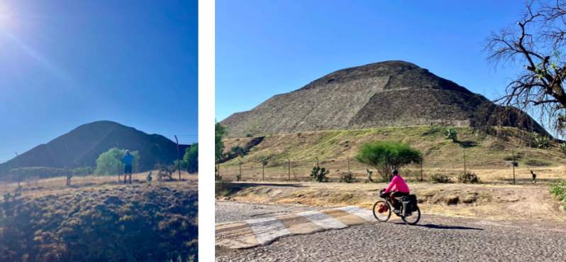 De rest van de etappe is prut. Het is niet mooi, er is geen fietspad meer en het wordt steeds drukker op steeds smallere wegen. Pas de laatste tien kilometer voor Teotihuacan wordt het beter. Het dorp is een zogenaamde Pueblo Magico, een bijzondere toeristische trekpleister en we willen eigenlijk wel even een terrasje pakken om te vieren dat we het hebben overleefd, maar hoe mooi de plaza ook is, er is geen terras. Door naar de camping even buiten het dorp dan maar.