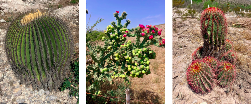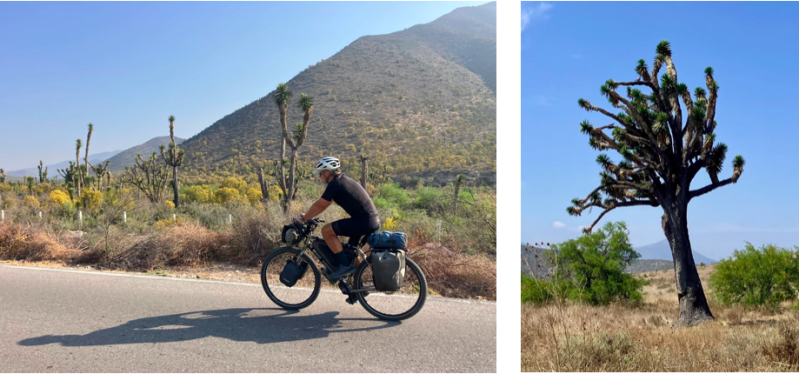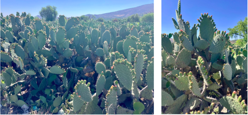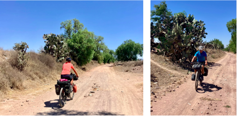 De route is best mooi en rustig. Op een gegeven moment fietsen we onverhard tussen de cactussen. We zijn nog te kort in Mexico om deze plantensoort al zat te zijn. De vijgcactus wordt geteeld op landbouwpercelen. Niet echt bijzonder dus, maar blijkbaar is het de tijd van het jaar dat deze cactus haar bloempjes wil laten ontspruiten.