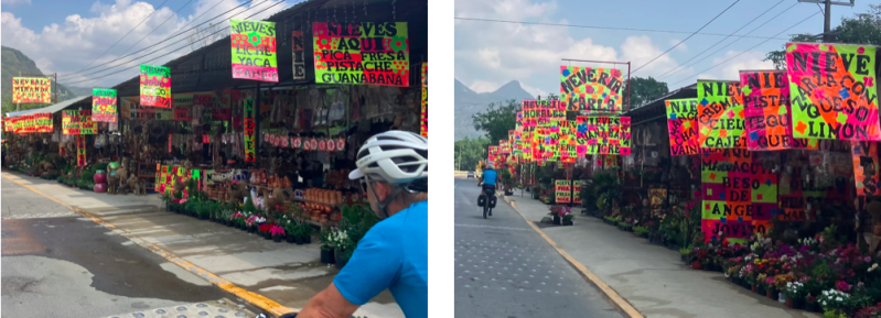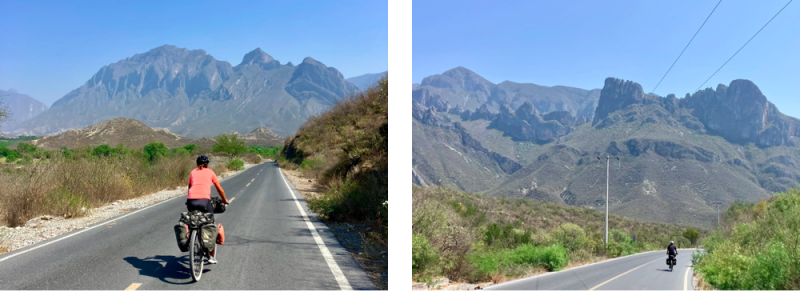 Eindpunt van de etappe en van die blog is Monterrey, een industriestad en blijkbaar geen fietsstad. Er zijn nauwelijks fietspaden en via brede wegen fietsen we de stad in, fietsen we naar Decathlon en fietsen we naar het busstation. Bij Decathlon hoeven we geen nieuw matje te halen. De fabrikant stuurt een mat naar een aardige mevrouw (en warmshowers-host) net over de grens met de Verenigde staten om de kapotte te vervangen. Verder hangen we tevreden rond in het AirBnB appartement in een buitenwijk van deze niet zo mooie stad. De fietsen worden afgespoten, de bandjes opgepompt, de kleren gewassen. We nemen ook een keer een taxi naar het centrum om rond te struinen. De gemaakte rivier en Barrio Antiquo zijn wel aardig, maar verder is het een grijze stad waar de auto domineert.
