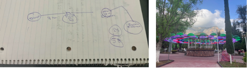 Het oorspronkelijke plan is om vanuit hier naar Generaal Zaragoza te fietsen en daar te kamperen bij de waterval. We lezen op iOverlander dat de weg nogal beroerd is met grove losse keien en dat het advies is om via Aramberri te gaan. Volgens Komoot zou de weg geasfalteerd zijn, maar dat geloven we niet. We overwegen om het advies te volgen en via Aramberri te gaan. Maar we beseffen ons al snel dat we dan veertig kilometer op en neer fietsen om een waterval te aanschouwen, die aan het eind van het droge seizoen waarschijnlijk tegen zal vallen. Bovendien is het slapen op een matje dat kapot is ook niet een ervaring om naar uit te kijken. Zodoende passen we de route aan en laten Generaal Zaragoza en de waterval rechts van ons liggen.