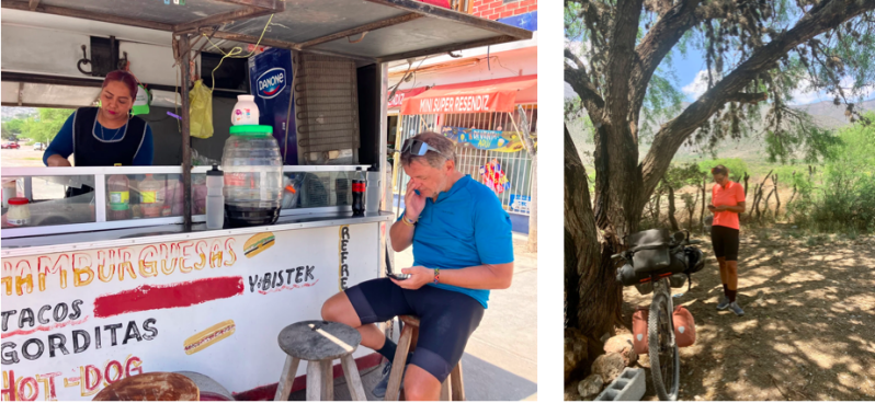 Het stadje met de bijzondere naam Doctor Arroyo heeft wat meer om het lijf dan het vorige dorp en we checken in bij een nieuw hotel aan een pleintje. We zijn blij dat we zijn doorgefietst. Er is een Mi Bodega Aurora supermarkt waar we alvast een ontbijt kopen, een OXXO voor een cappuccino frio om te vieren dat we het gehaald hebben en op het pleintje staan meerdere streetfood tentjes en het wordt (natuurlijk, 'what else?') taco's als avondeten: lekker en goedkoop.