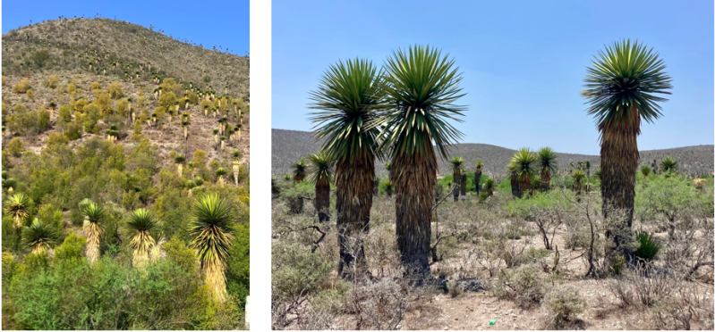 Na het ukkepuk dorpje Tapona, waar we bij een mini-tiendas door een luikje een paar koude drankjes kunnen bemachtigen, houdt het asfalt op. We komen nu helemaal geen andere weggebruikers meer tegen, de wind valt weg en het aantal yucca's neemt verder toe. Het doet ons denken aan het bijzondere landschap met frijoles die we in Equador en Colombia hebben gezien. We vinden yucca's als kamerplant helemaal niet mooi maar nu wel. Er groeien hier twee types, die met een dikke stam en één enkele top en die met een dunnere stam die kronkelig vertakt naar meerdere toppen. We fietsen zo ruim dertig kilometer onverhard, de laatste tien kilometer worden wat zwaar en te heet.