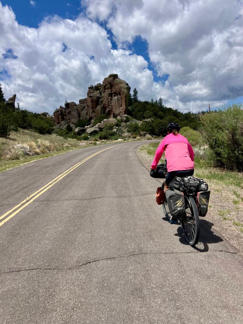 Michael blijkt een goede metgezel om mee samen te fietsen: dezelfde snelheid, no rush, humoristisch op momenten dat dat leuk is, niet vol met kijk mij nou verhalen, niet vol met vragen over onze achtergrond/familie terwijl je aan het fietsen bent. Kortom, een aardige gast. Halverwege de klim pakken we onze stoeltjes uit om pauze te nemen. Michael heeft een minimalistische bepakking, maar wel met een stoeltje, hetzelfde als wij. Daarna fietsen we door naar boven naar Luders Creek campground. Op de camping is een bron en daar vullen we ons water bij. Het water ziet er helder en betrouwbaar uit, maar voor de zekerheid filteren we het. Michael is al een uur langer onderweg dan wij en besluit om de campground aan een picknick tafel te gaan zitten om te lunchen. Wij hebben een plan om een lange etappe te doen en fietsen alvast door. Niet veel hoger dan Luders Creek campground volgt de Cochetopa Pass en daarna mogen we afdalen. Het schiet echter voor geen meter op, want de wind blaast ons net zo hard tegen als dat de zwaartekracht ons naar beneden trekt. Tegen onze wil in moeten we stevig doortrappen om beneden te komen.