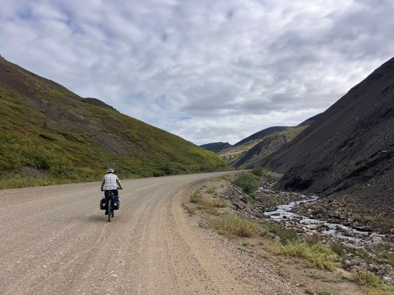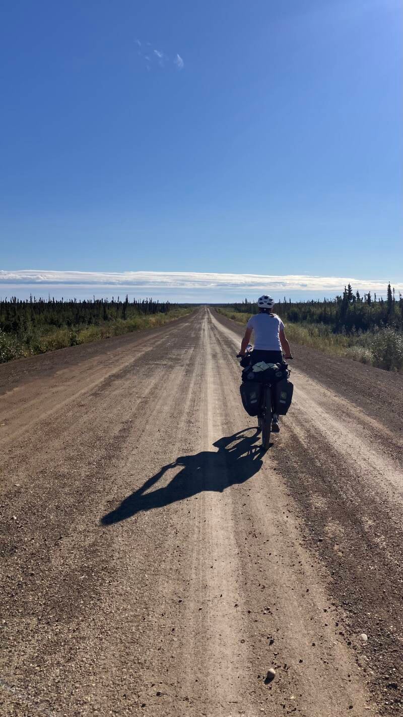 Halverwege de volgende dag ontmoeten we Caroline uit Texas, die solo op de fiets naar Ushuaia wil gaan. Ze is in Prudhoe, Alaska gestart, de meest gekozen startplek voor een Panamerikaans avontuur. We hebben daar niet voor gekozen omdat het in Prudhoe niet mogelijk is om tot de noordelijke ijszee door te fietsen. De kuststrook is volledig in eigendom van oliemaatschappijen. Het is wel mogelijk om de ijszee te bezoeken, maar dat is dan met een (dure) toer. Bovendien is ons ter ore gekomen dat de Dempster hightway veel mooier én fijner is om te fietsen dan de Dalton highway, dat vol zit met vrachtverkeer voor de olie-industrie. Dus wij gaan naar Tuktoyatuk.