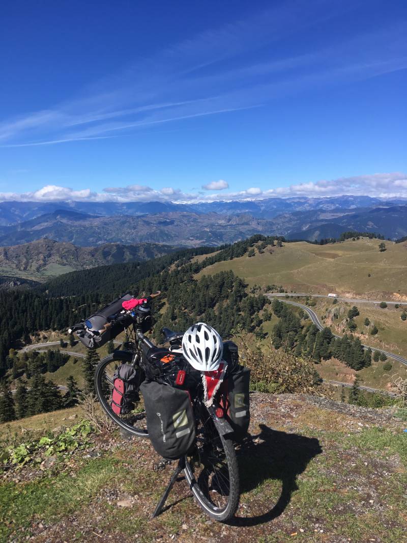 De eerste 500 meter op de D-925 hebben we al overbrugd tot aan het dorpje Ikizdere. Nu staat ons de etappe te wachten waarbij we 2.140 stijgingsmeters in onze benen krijgen. We hebben tot nu toe nog nooit zoveel stijgingsmeters in één dag gefietst. Daarbij komt kijken dat we tijdens vorige fietsavonturen onze fietsen niet zo zwaarbeladen hebben als voor deze tocht rond de wereld (naar schatting sleuren wij allebei zo’n 20 kilogram aan bagage mee). We zullen zien hoe ons dat vergaat.