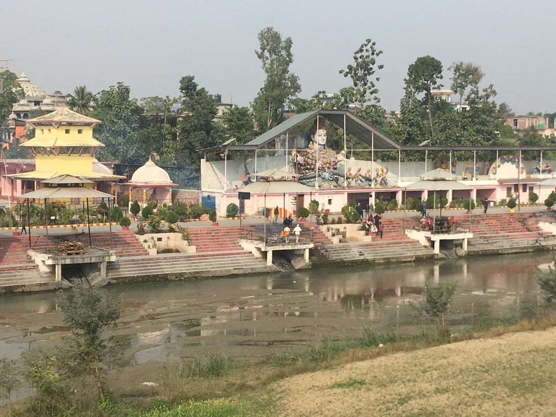 De volgende dag maken we een kortere etappe van 63 kilometer naar de stad Damak. Onderweg passeren we een begrafenis stoet en kort daarop een hindoe tempel aan de rivier. We blijven net over de brug staan om het ritueel te bekijken. In Kathmandu is de ceremonieel crematie een toeristische attractie waar we ons niet toe geroepen voelden, maar nu we het tegenkomen zijn we toch wat nieuwsgierig. Vanaf gepaste afstand zien we de stoet naar de waterkant komen om afscheid te nemen waarna het lichaam op de houtstapel wordt gelegd en van de lijkwade en bloemen wordt ontdaan. Nieuwsgieriger zijn we niet en we fietsen verder.