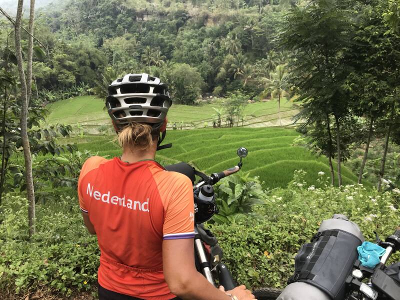 De resterende twee dagen kenmerken zich door de gebruikelijke dingen die we steevast op rustdagen doen, waaronder natuurlijk deze blog schrijven. We kijken terug op een bijzondere reis door Java met haar lieve en goedlachse bevolking, kleurrijke huisjes onder rode pannendaken in dichtbevolkte steden en langs de wegen tussen de rijstvelden. Natuurlijk vonden wij het grappig om wat Nederlandse koloniale geschiedenis en -invloeden op onze reis tegen te komen, maar op onze etappes was er altijd wat te zien. Al zit je onderweg even uit te puffen voor een minimarket met een isodrankje en/of een ijsje; je raakt niet uitgekeken.