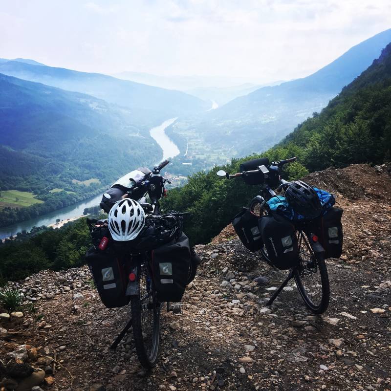 In Perucac blijkt de camping te grenzen aan een mooi restaurant dat boven een rivier met waterval is gebouwd. We staan er als enige. Later arriveren een Italiaans stel met zo’n coole tent bovenop de auto en een Sloveens stel met een mini camperbusje. Irena, de Sloveense dame is erg onder de indruk van ons, zo op de fiets helemaal vanuit Nederland! Al snel brengt ze ons pruimen uit eigen tuin. Als we al in de tent liggen en bijna slapen, biedt ze aan ‘s ochtends koffie voor ons te maken. Die slaan we af want we hebben onze eigen espressomaker, maar als ‘s ochtends blijkt dat de nieuwe koffie niet geschikt is voor de perculator, komen we daar op terug. Samen met de koffie krijgen we van Irena eigengemaakte homeopatische zalf tegen pijntjes en tegen wondjes. Wat een lief mens! Ze wonen op een boerderij in west Slovenië en vieren vakantie in de verschillende landen van voormalig Joegoslavië.