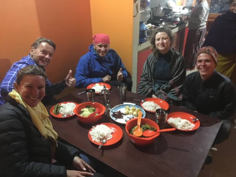 Op kerstavond is het restaurant van ons hotel, als een van de weinige in de stad, geopend. Leo is in Kohima aangekomen en zit in dezelfde homestay als Tanja en Jakob en als Simon, een 57-jarige gepensioneerde Britse leraar die door de Himalaya’s wandelt en afgedwaald lijkt te zijn. De Britten hebben eten gekocht omdat er gekookt kan worden in hun homestay. Ze willen eigenlijk de volgende dag een lunch voor ons maken. Daar bedanken we voor, want wij willen morgen op tijd verder fietsen. We besluiten om deze kerstavond opnieuw in ons hotelrestaurant te eten, nu met zijn zevenen. Simon heeft al een borrel op en is helaas te nadrukkelijk aanwezig. Het is wel leuk om Leo te ontmoeten. We wisten van Christoph dat hij ergens achter ons fietste en mooie avonturen beleefd. De avond eindigt minder gezellig als er wat onduidelijkheid is over de bestelling en de rekening, waarbij de inmiddels beschonken Simon zich ronduit irritant gedraagt. De vorige avond met ons vijven was een stuk gezelliger, jammer.