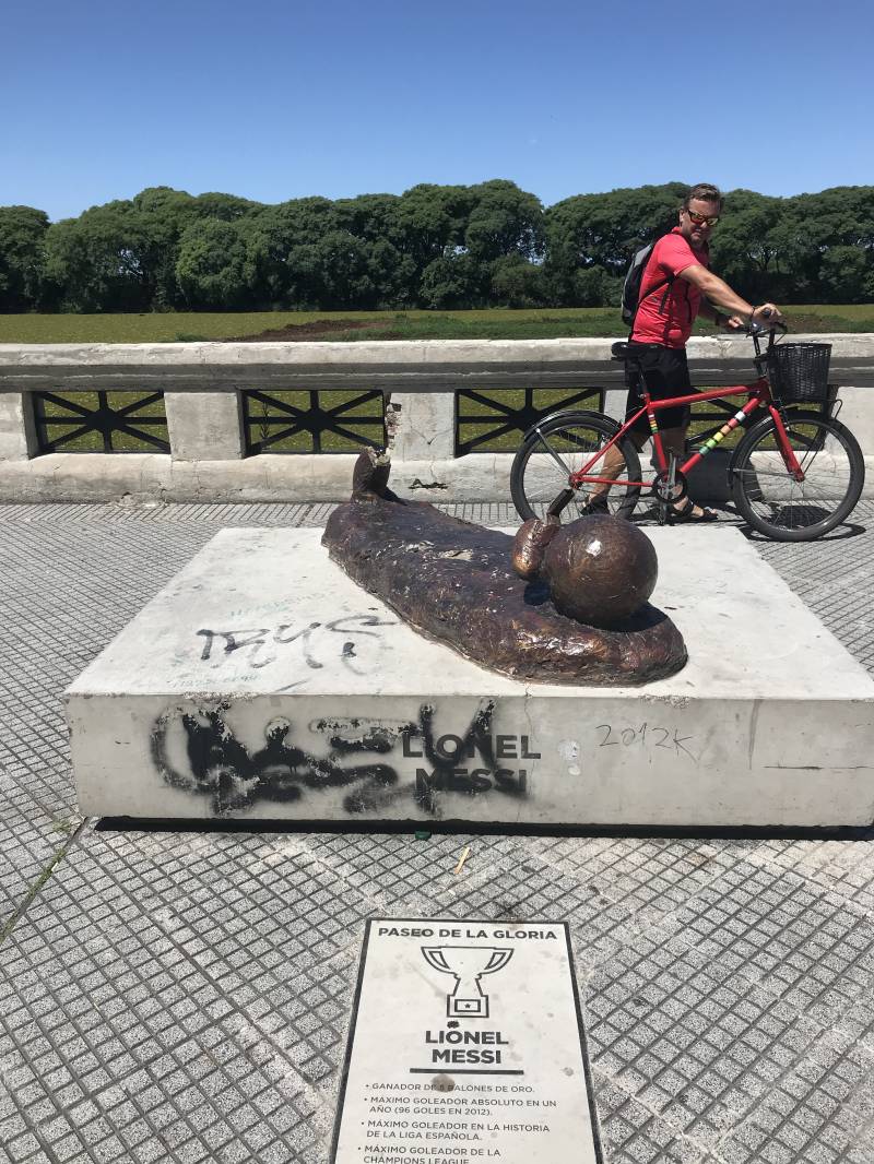 Nieuwjaarsdag wordt er voor het gevoel alleen maar geslapen, de jetlag en de lange slapeloze nacht eisen flink hun tol, maar de dagen daarna struinen we als echte toeristen de bezienswaardigheden van de stad af. We wandelen uren door het leuke Palermo, we proberen de gratis fietsen, we pakken de metro en we huren fietsen. Het “Parijs van het Zuiden” laat op ons een indruk achter van een stad die zijn beste tijd alweer een tijd geleden heeft gekend, met uitzondering dan van Palermo. Veel bedelaars, veel zwervers, veel hondenpoep, veel verdwenen historische panden ten faveure van foeilelijke goedkope woontorens, veel achterstallig onderhoud in de publieke ruimte alsook de gebouwen. De parken worden goed verzorgd en stralen wel allure uit. Wat ook bewonderingswaardig is, is het fietspaden netwerk waardoor we eenvoudig en veilig onze weg vinden door de miljoenen stad. Superleuk en gezellig: elk kruispunt wordt op de hoeken gemarkeerd door café’s, bakkerijtjes, lunchrooms, winkeltjes, noem maar op. En al die standbeelden, wat een grandeur en je vindt ze overal… behalve die van voetballer Lionel Messi, dat standbeeld is foetsie: alleen zijn voet en de voetbal is nog te zien.