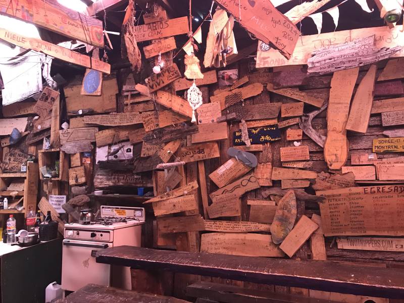 De kroeg blijft (doordeweeks) open tot 4 uur ’s nachts en we besluiten de warmte op te zoeken en onder het genot van een biertje nog eens onze opties te bespreken. Alle tafeltjes zijn bezet en we vragen aan twee jongedames of we bij hen aan het tafeltje mogen zitten: “Si, no problemo!” We worden vervolgens zo’n beetje door iedereen aangesproken. Niet iedereen is even nuchter, maar iedereen is oprecht nieuwsgierig en veel proberen ook hun eigen Engels even te testen. Door al deze aandacht, maar ook vanwege het feit dat de dames aan onze tafel totaal geen Engels spreken, blijft het contact met hen op de vlakte. Tot aan sluitingstijd, wat helaas drie kwartier eerder is dan buiten op het bord staat. Als het café leegloopt (niemand die vervelend blijft hangen en/of nog een rondje bier eist) zien zij onze vertwijfeling: wat gaan we doen, waar kunnen we terecht? Tezamen met een laatste en gelukkig Engelssprekende gast, proberen ze een oplossing voor ons te vinden, totdat een van de dames - Daniella heet ze - tegen ons zegt dat we welkom zijn om bij haar te overnachten. We lopen samen naar buiten nemen afscheid van de laatste Engelssprekende persoon in deze stad waarna Vanessa, de andere jongedame, haar autootje voorrijdt en de achterbank begint neer te klappen zodat we de fietsen erin kunnen stoppen. Iedereen enthousiast, behalve Harry, die als enig overgebleven man het ruimtebesef heeft dat dit nooit-niet-nimmer gaat lukken. “Oké, geen probleem, fiets dan maar achter ons aan,” zegt Vanessa. Een dik kwartier en een paar pittige klimmetjes later, parkeren wij hijgend onze fietsen in het voorportaal van het huisje van Daniella. Er volgt nog een supergezellig uurtje met Youtube muziekvideo’s en bier. Wat duidelijk wordt is dat we twee geweldig lieve, leuke vrouwen hebben ontmoet! Even na vijven, het is buiten alweer licht, gaat Vanessa naar huis, pompen we onze matrasjes op en spreken we af dat we om 11 uur te ontbijten. We vragen Daniella of ze weet welke provider toeristen SIM kaarten verkopen. Ze zegt ‘yo’ wat ‘ik’ betekent en plukt twee kaarten uit haar tas en laat ons een jas zien van waar ze werkt: Claro, een grote provider in Chili. Hoe grappig is dat en we zijn weer in de lucht. Rond 9 uur ’s ochtends heeft de host van het Airbnb-huisje het adres doorgegeven en een telefoonnummer. Klokslag 11 uur gaat Daniella naar buiten om ontbijt voor ons te halen en daarna te maken. Vanessa komt ook weer aanrijden en we kletsen weer “volop” via Google translate totdat we van deze schatten afscheid nemen.