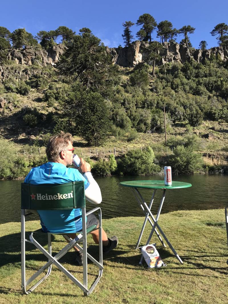Onze camping aan Lago Norquino is tot nu toe, de fijnste die we in Zuid-Amerika hebben bezocht. Een groot terrein met overal prima en snelle WiFi, een modern (en schoon!) toiletgebouw, een gemeenschappelijke ruimte met koude biertjes en youtube op een flatscreen, en de hele camping voor ons alleen, want we zijn de enige gasten. Misschien mede daarom worden we in de watten gelegd door Sonja, de gastvrouw. Als we het mooiste plekje hebben uitgezocht, komt ze ons stoeltjes (van Heineken!) en een tafeltje brengen en als Roelie later op de avond in de gemeenschappelijke ruimte de pan met macaroni op de grond laat vallen, staat ze al met de dweil klaar...