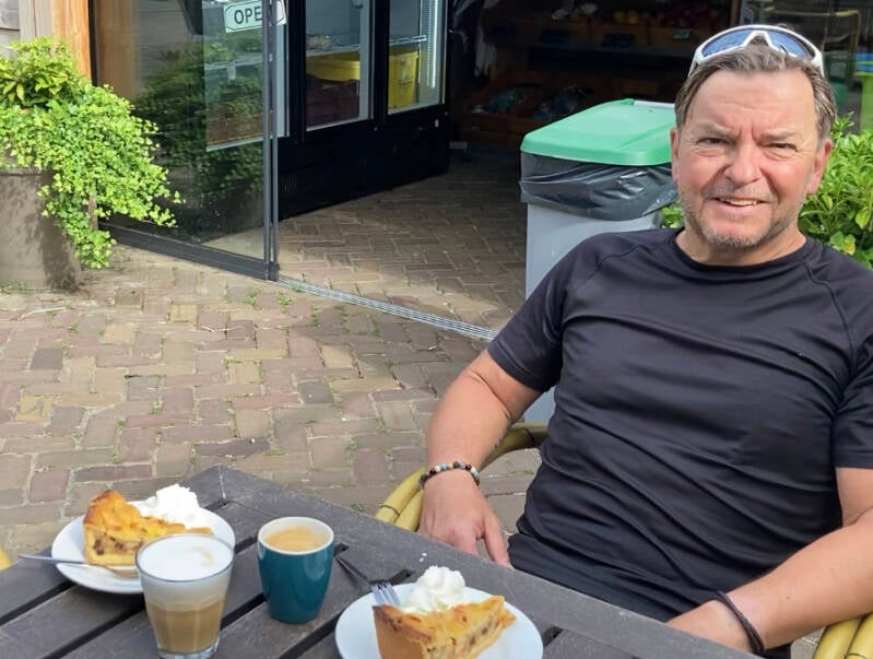 In de ochtend mogen we eerst een aantal mooie kilometers maken door nationaal park Dwingelderveld. Al snel wordt het opnieuw wat saai. De geplande route staat enigszins in het teken van het halen van de boot. De Roots wandelroute zou waarschijnlijk mooier zijn, maar langer en het gaat een warme dag worden. We zijn relatief vroeg vertrokken. Het is nog vroeg als we zin krijgen in koffie met appeltaart maar op maandag is veel gesloten. Maar niet in Balloo. De zorgboerderij heeft al voor 10 uur een bord buiten staan dat ze open zijn.